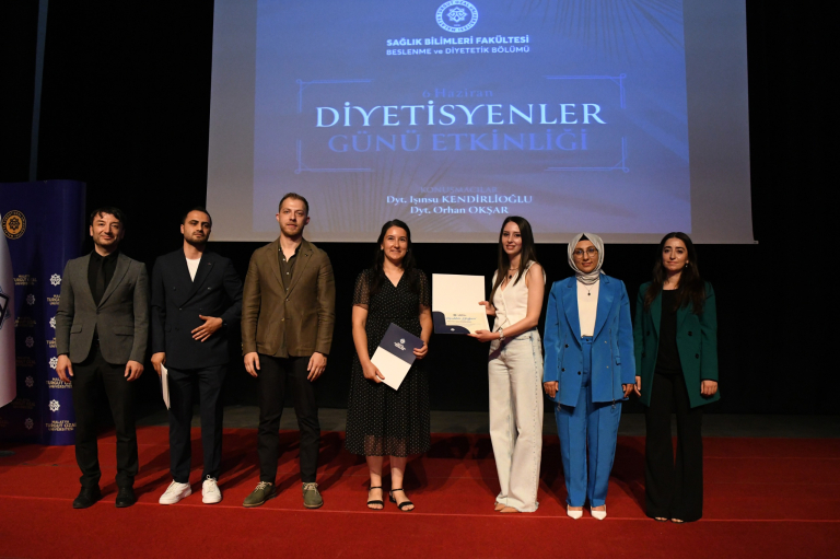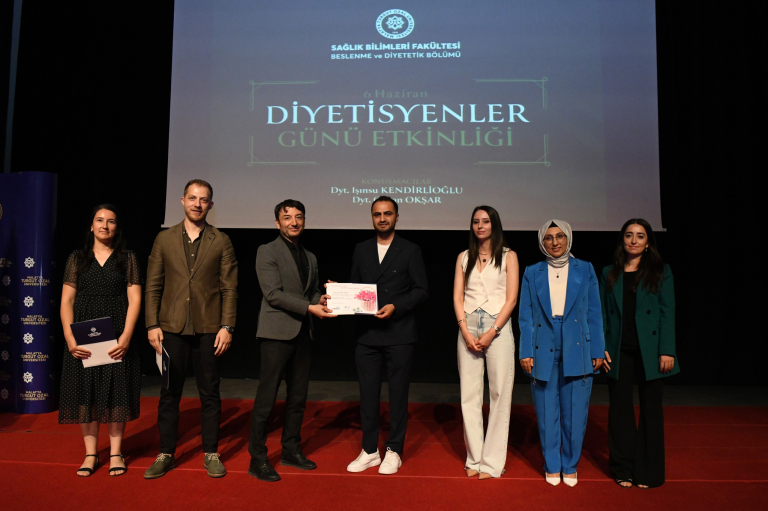 Sağlık Bilimleri Fakültemiz Beslenme ve Diyetetik Bölümü tarafından 6 Haziran Diyetisyenler Günü Etkinliği ve Beyaz Önlük Giyme Töreni düzenlendi. Törene Rektör Yardımcısı Prof. Dr. İlhan Erdem, Dekanımız Prof. Dr. Şahin Direkel, konuşmacı olarak; Diyetisyen Işınsu Kendirlioğlu, Diyetisyen Orhan Okşar, üniversite akademik personeli ile öğrenciler ve veliler katıldı.